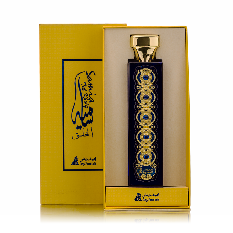 SAMIA TUL KHULQ is the epitome of all things nice. The fragrance itself has a dreamy ambience of Oriental, Floral, Ambery leaving you in a wonderland from its top note of rose saffron and red fruits a pleasant combination to awe any women. Heart notes consists of woody texture base. Dry amber musk and vanilla gives it staying power that will ensure to compliment all day. Presented in an elongated bottle Prussian blue with perfume capacity of 100ml.